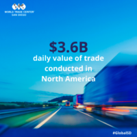 “An integrated North American economy creates opportunity on both sides of the border. For every 10 jobs an American multinational creates in Mexico, it creates 25 in the United States,” said Nikia Clarke, Ph.D., executive director, World Trade Center San Diego. “As we look at a global economy where 95 percent of the world consumers live outside of North America, the ways we partner with Canada and Mexico to produce goods, services, and technology is crucial to our economic future.”